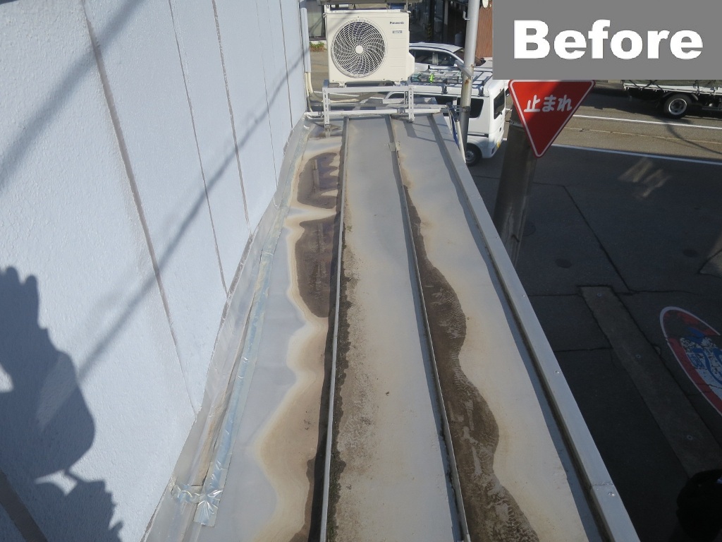 このたび、日頃よりお世話になっている屋根・板金工事店の社長様より、ステンレス板金で防水されている庇屋根の改修についてご相談をいただきました。