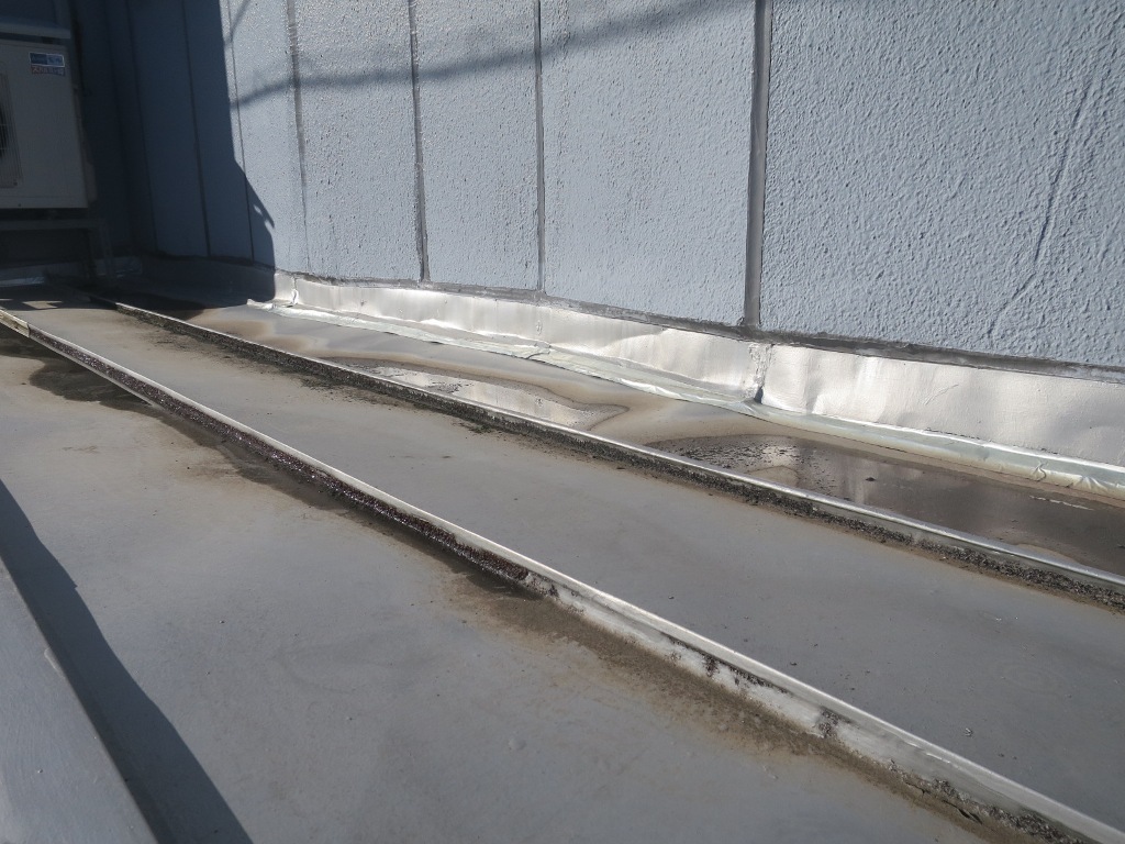 現地確認を行い、既存の状況を踏まえたうえで、塩ビシート防水にて改修工事を実施いたしました。